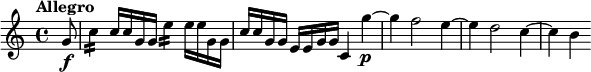 Allegro (C-Dur) – beginnt mit einer Unisono-Fanfare des gesamten Orchesters auf C, gefolgt von einem Kontrast zwischen Streicher-Tremolo und einer lyrischen Streicherantwort; der erste Satz wird häufig als eher zweiteilige Anlage denn als voll ausgearbeitete Sonatenform beschrieben.