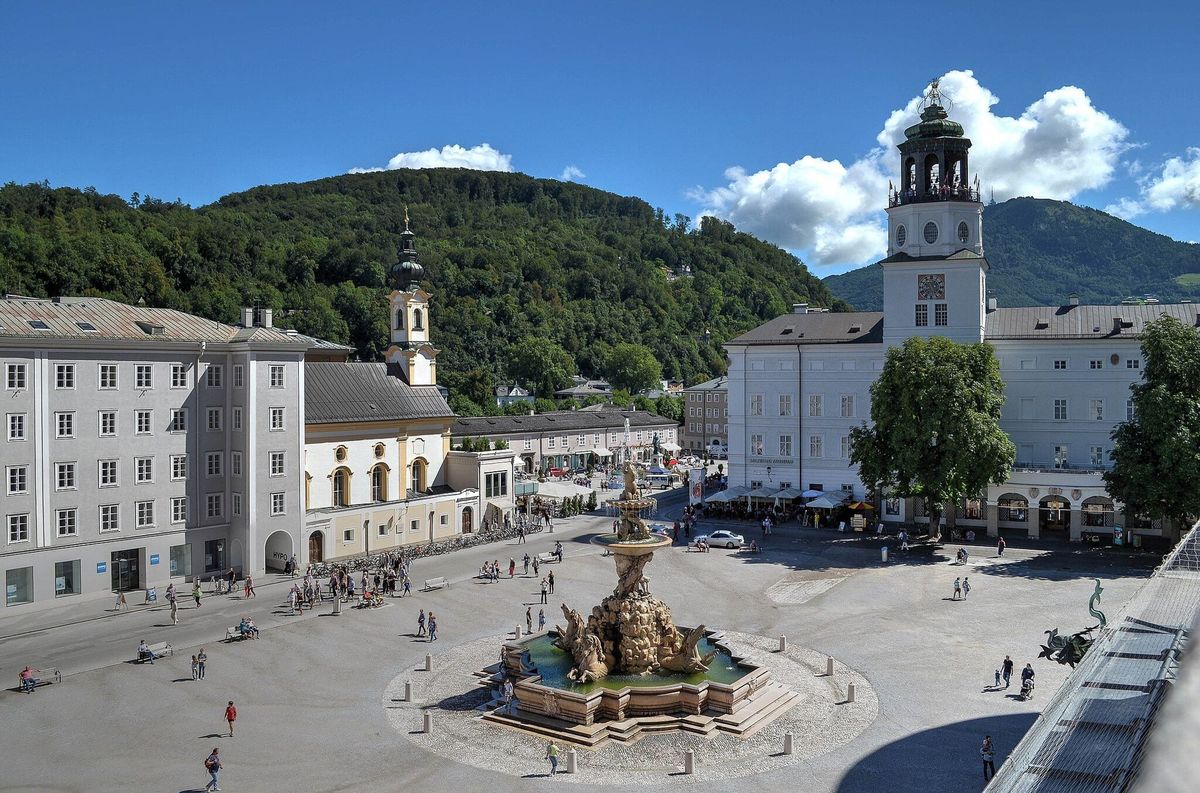 Residenzplatz à Salzbourg, où se tenaient des cérémonies de cour et des sérénades en plein air. La Marche en ré majeur, K. 62 de Mozart a probablement été écrite pour un événement sur cette même place en 1769. (Barbara Marko-Bartilla, CC BY-SA 4.0, via Wikimedia Commons)